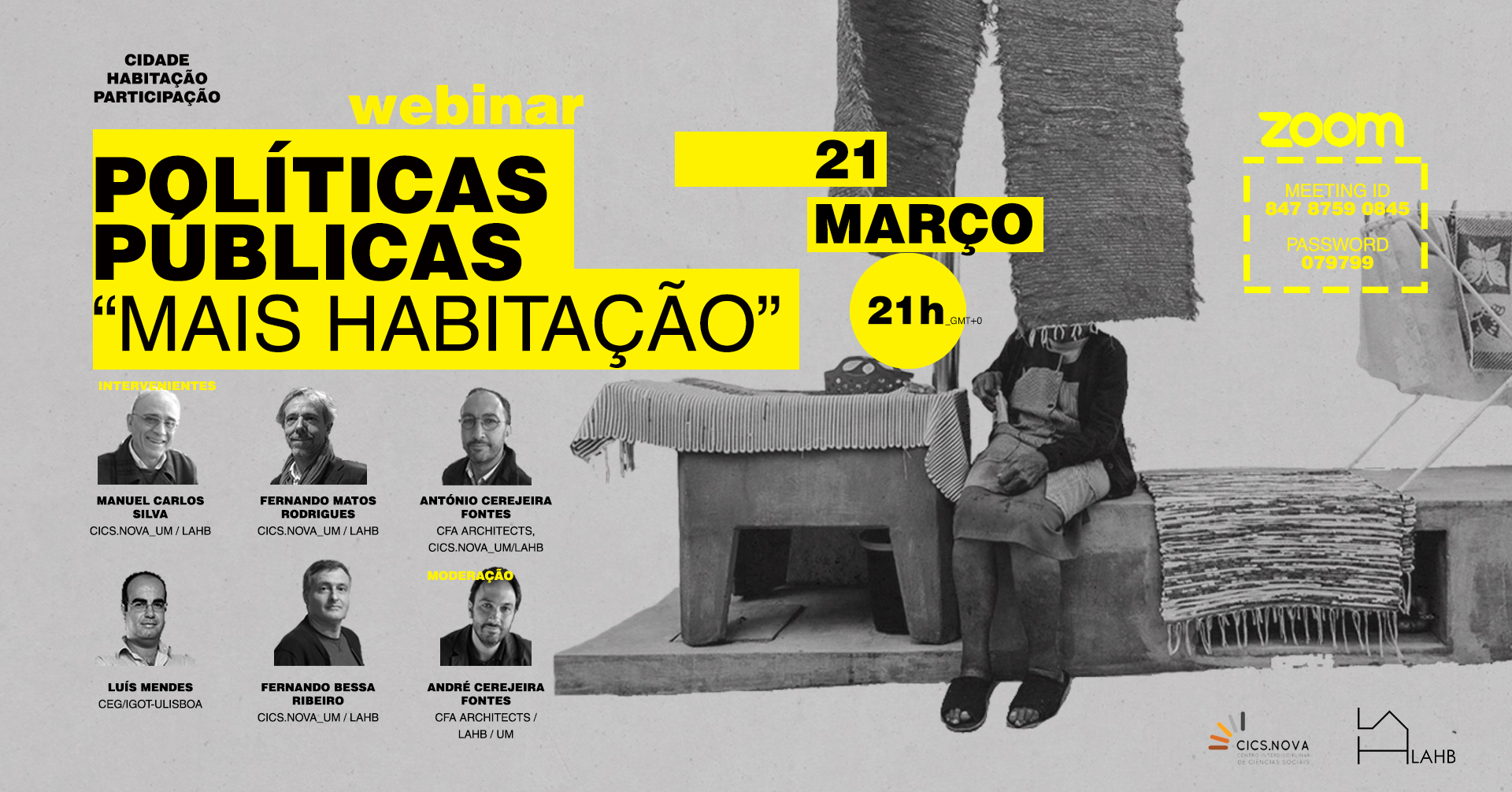 No próximo dia 21 de março de 2023, pelas 21H, em formato virtual (via plataforma Zoom), o Centro Interdisciplinar de Ciências Sociais (CICS.NOVA) e o Laboratório de Habitação Básica Participada (LAHB) promovem um debate sobre a proposta “Mais Habitação”, que procura responder ao problema da habitação em Portugal.