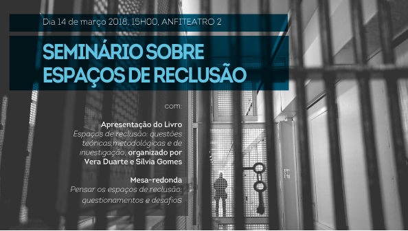 Divulga-se o “Seminário sobre Espaços de Reclusão”, organizado por Sílvia Gomes e Vera Duarte (CICS.NOVA.UMinho), que se realiza no dia 14 de março de 2018, pelas 15:00 horas, nas instalações do Instituto Universitário da Maia (ISMAI)| Anfiteatro 2 – Campus Académico da Maiêutica.