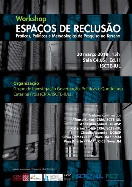 Workshop “Espaços de Reclusão. Práticas, Políticas e Metodologias de Pesquisa no Terreno”| 20 de março, 15h| Sala C4.05, Ed. II, ISCTE-IUL