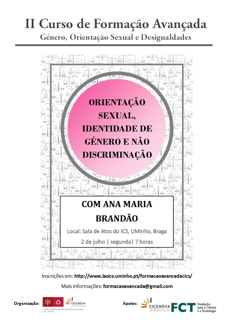 O prazo de inscrições no Módulo 4 – Orientação sexual, identidade de género e não discriminação do II Curso de Formação Avançada – Género, Orientação Sexual e Desigualdades – foi prolongado até ao dia 27 de junho de 2018.