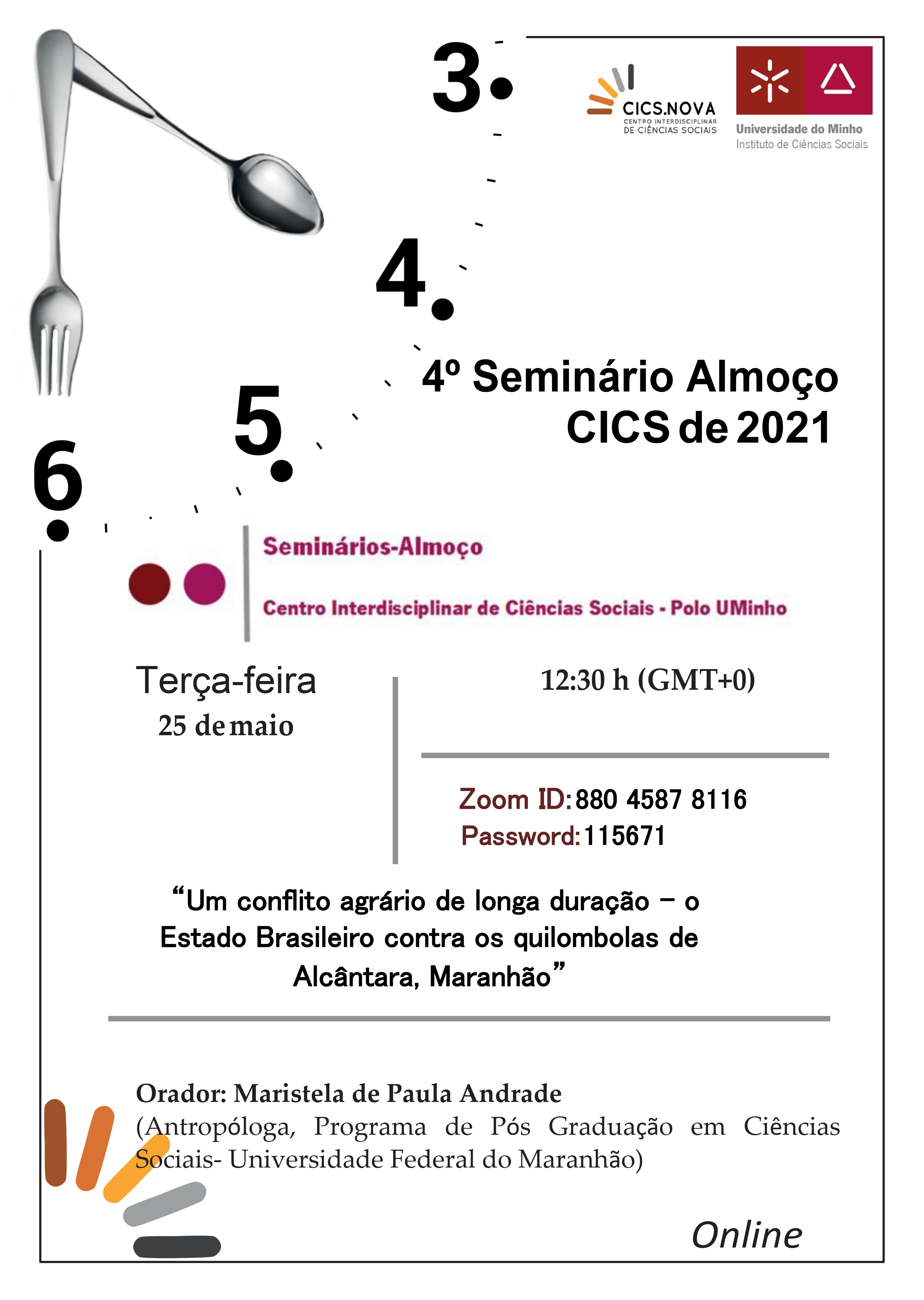 4º Seminário almoço CICS 2021|“Um conflito agrário de longa duração – o Estado Brasileiro contra os quilombolas de Alcântara, Maranhão”| 25 de maio – 12:30 horas