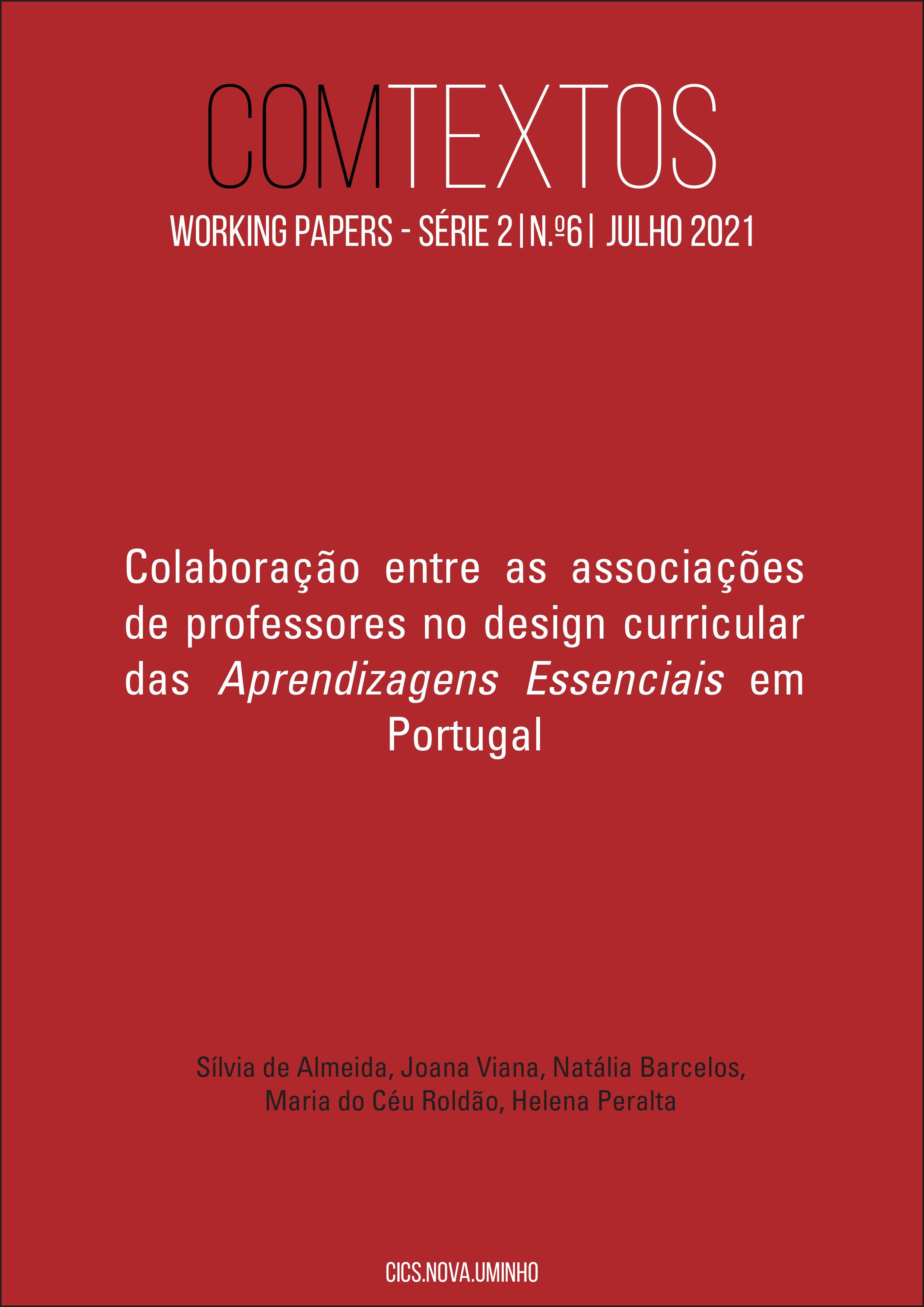 sponível online um novo working paper intitulado “Colaboração entre as associações de professores no design curricular das Aprendizagens Essenciais em Portugal”, da autoria de Sílvia de Almeida, Joana Viana, Natália Barcelos, Maria do Céu Roldão, Helena Peralta, publicado na revista eletrónica ComTextos, série 2, nº6, 2021, editada pelo Centro Interdisciplinar de Ciências Sociais da Universidade do Minho.