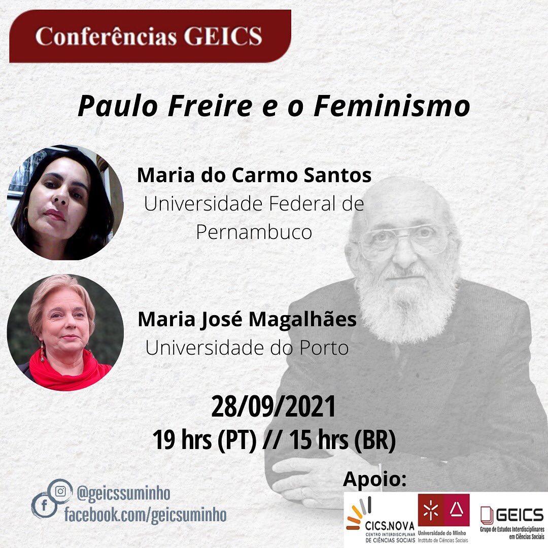 No regresso das férias, e no centenário de Paulo Freire, terá lugar, no próximo dia 28 de setembro, a conferência intitulada “Paulo Freire e o Feminismo”, com a participação de Maria do Carmo Santos (Universidade Federal de Pernambuco) e Maria José Magalhães (Universidade do Porto).