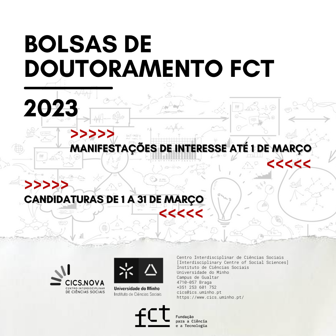 No seguimento do aviso (oficial) de abertura do Concurso para Atribuição de Bolsas de Investigação para Doutoramento FCT – 2023, o @cics.nova (e respetivos polos) informa que se encontra disponível para acolher candidaturas, enquanto Unidade de Investigação de Acolhimento, nos seguintes domínios de investigação: